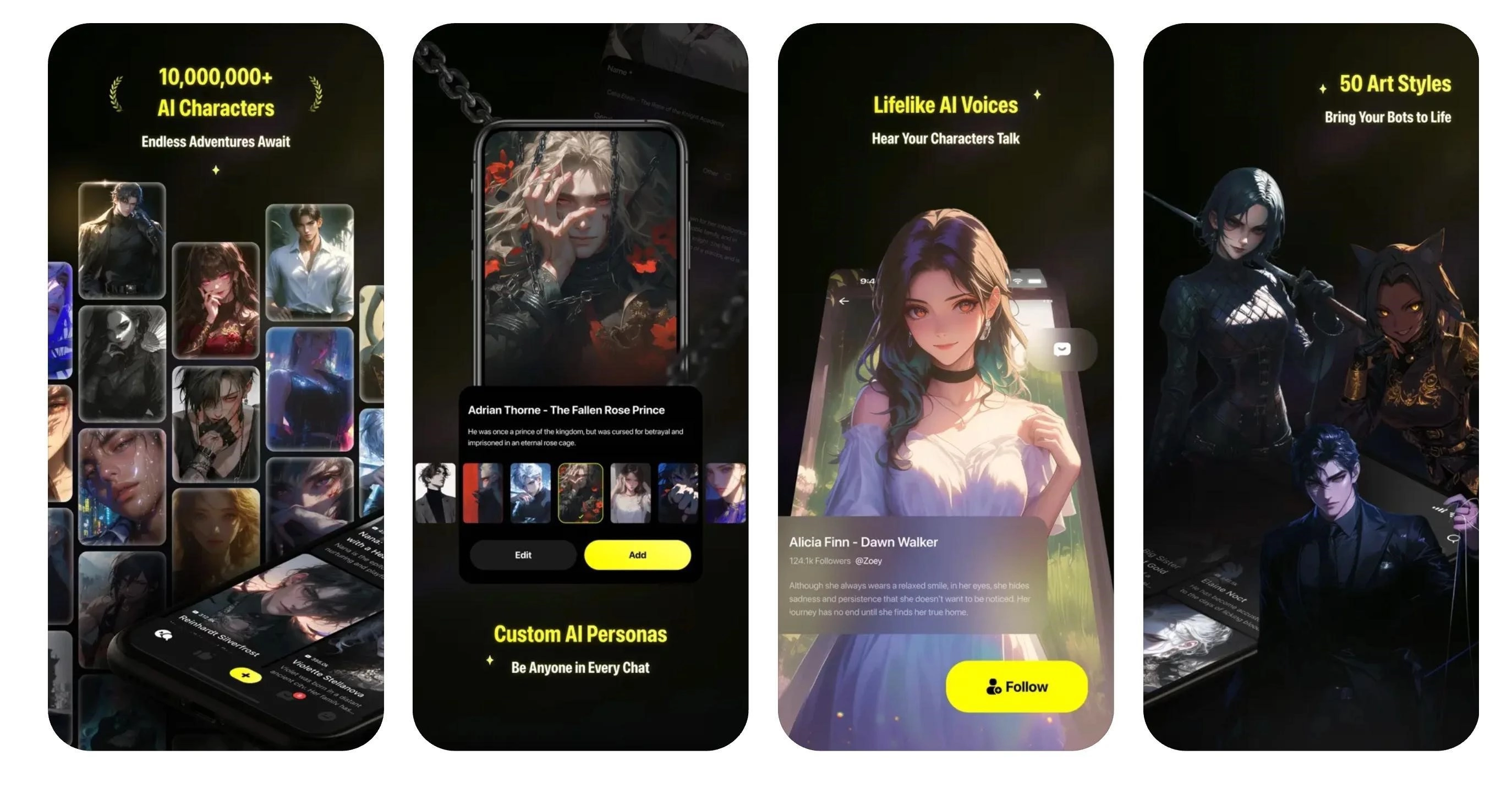 Во время диалога создаются сюжетные сцены и отдельные визуальные кадры. Их можно сохранять как ленту воспоминаний, личную новеллу или коллекцию атмосферных скриншотов из чата.