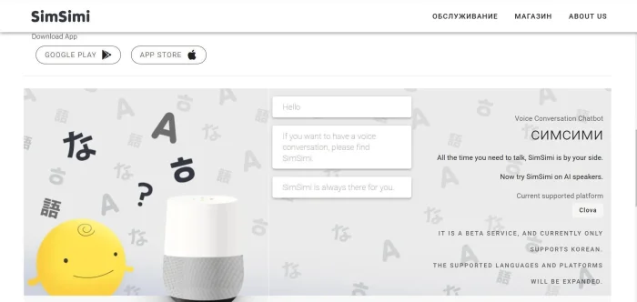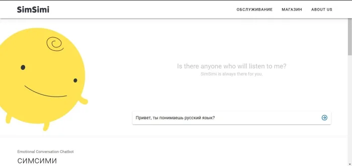 Рабочая ссылка на нейросеть SimSimi на русском языке бесплатно. Если ИИ приложение/сайт не работает или описание не соответствует действительности, сообщите нам.