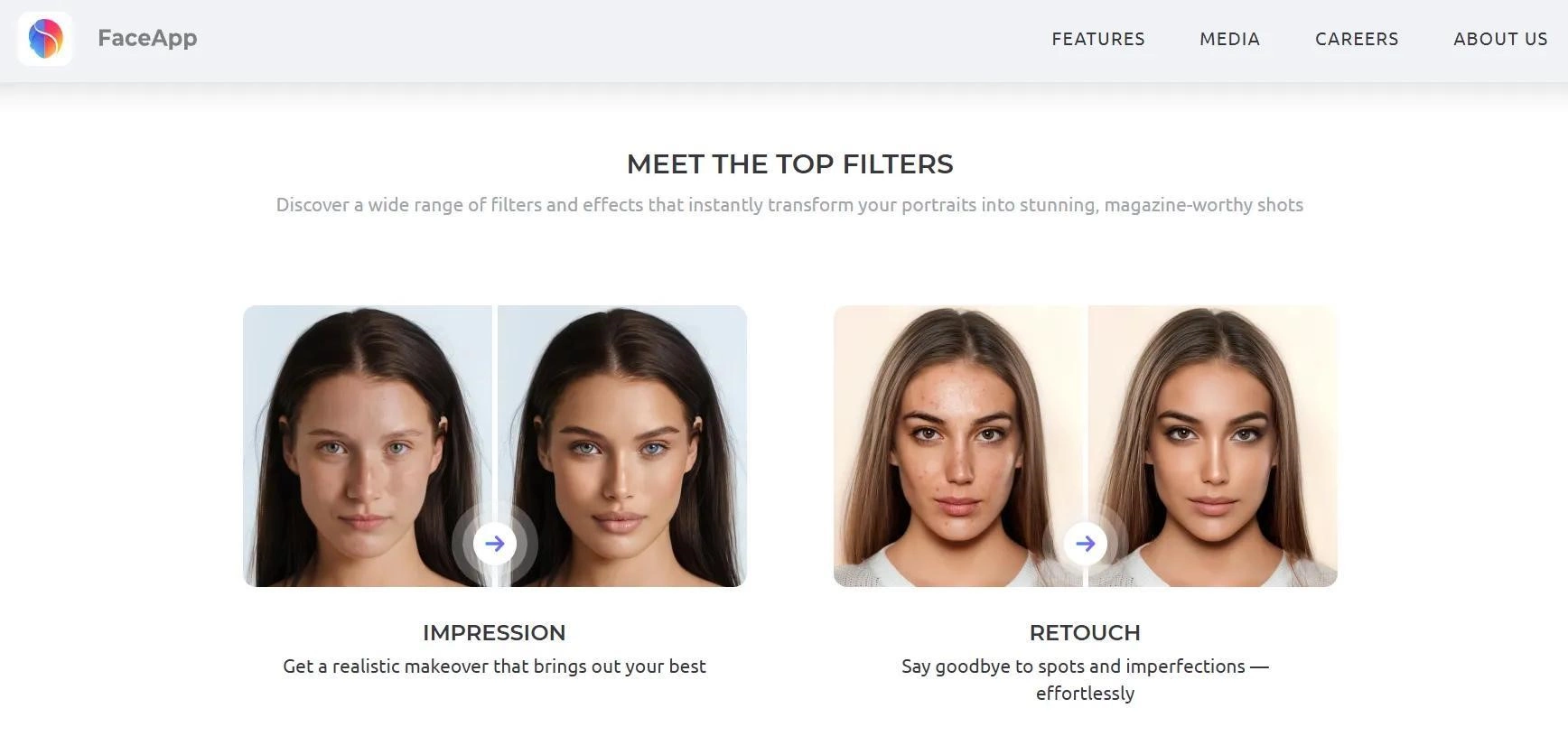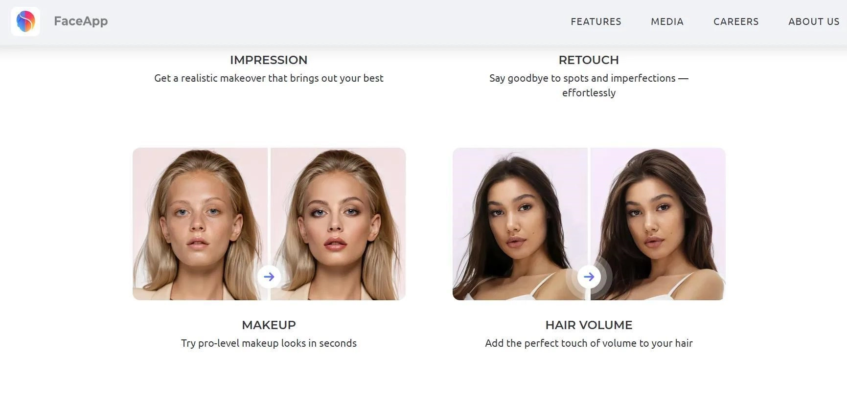 FaceApp - нейросетевая фотостудия для смартфона, которая за несколько секунд меняет портрет почти до неузнаваемости, но с сохранением естественных черт. Алгоритмы анализируют лицо, перестраивают возраст, эмоции, макияж и фон, создавая реалистичные снимки для соцсетей. Приложение доступно для айОС и Андроид и за годы набрало сотни миллионов установок.