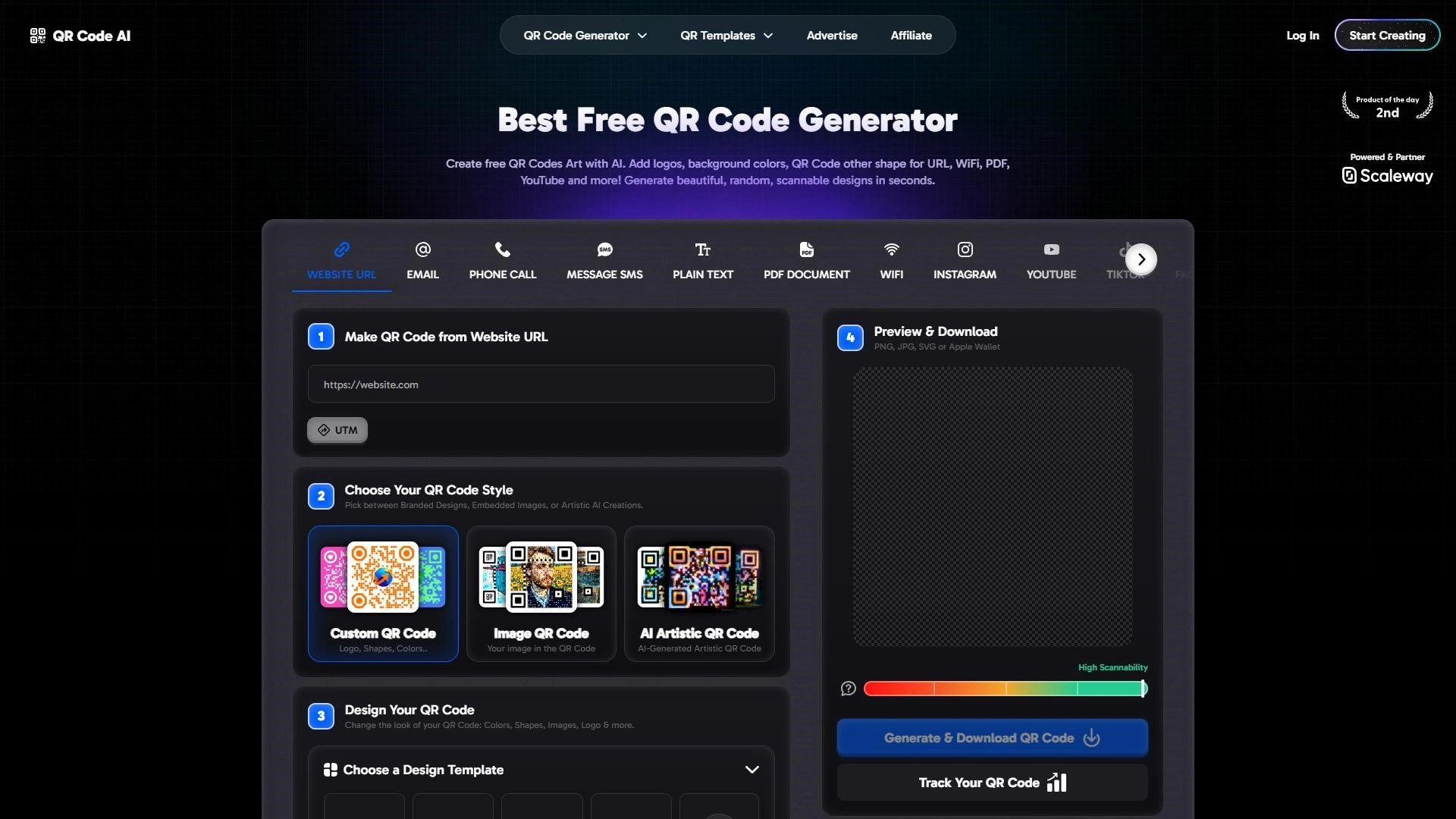 QR Code AI сочетает генерацию QR кодов с расширенными настройками дизайна и встроенной аналитикой. Делает его удобным рабочим инструментом для команд и агентств.