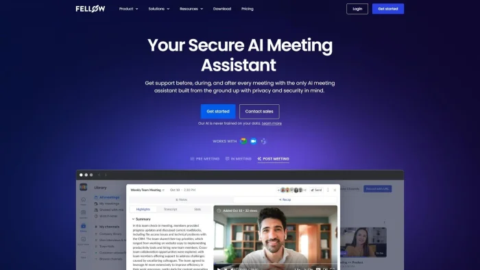 Fellow - защищённый ИИ ассистент для встреч, который записывает разговоры, расшифровывает аудио и автоматически оформляет структурированные конспекты. Сервис помогает командам фиксировать повестку, решения и задачи прямо рядом с календарём. Делается, чтобы подготовка, сама встреча и последующие действия были связаны в едином пространстве.