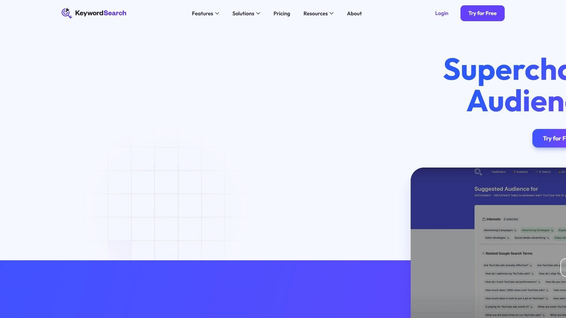 KeywordSearch - платформа на основе искусственного интеллекта для автоматизации цифровой рекламы. Сервис помогает находить и тестировать рабочие аудитории для Google и YouTube, подбирать ключевые слова и сравнивать себя с конкурентами. Инструмент сокращает время на ручное исследование. Полученные данные используют для повышения конверсий и снижения стоимости лида.
