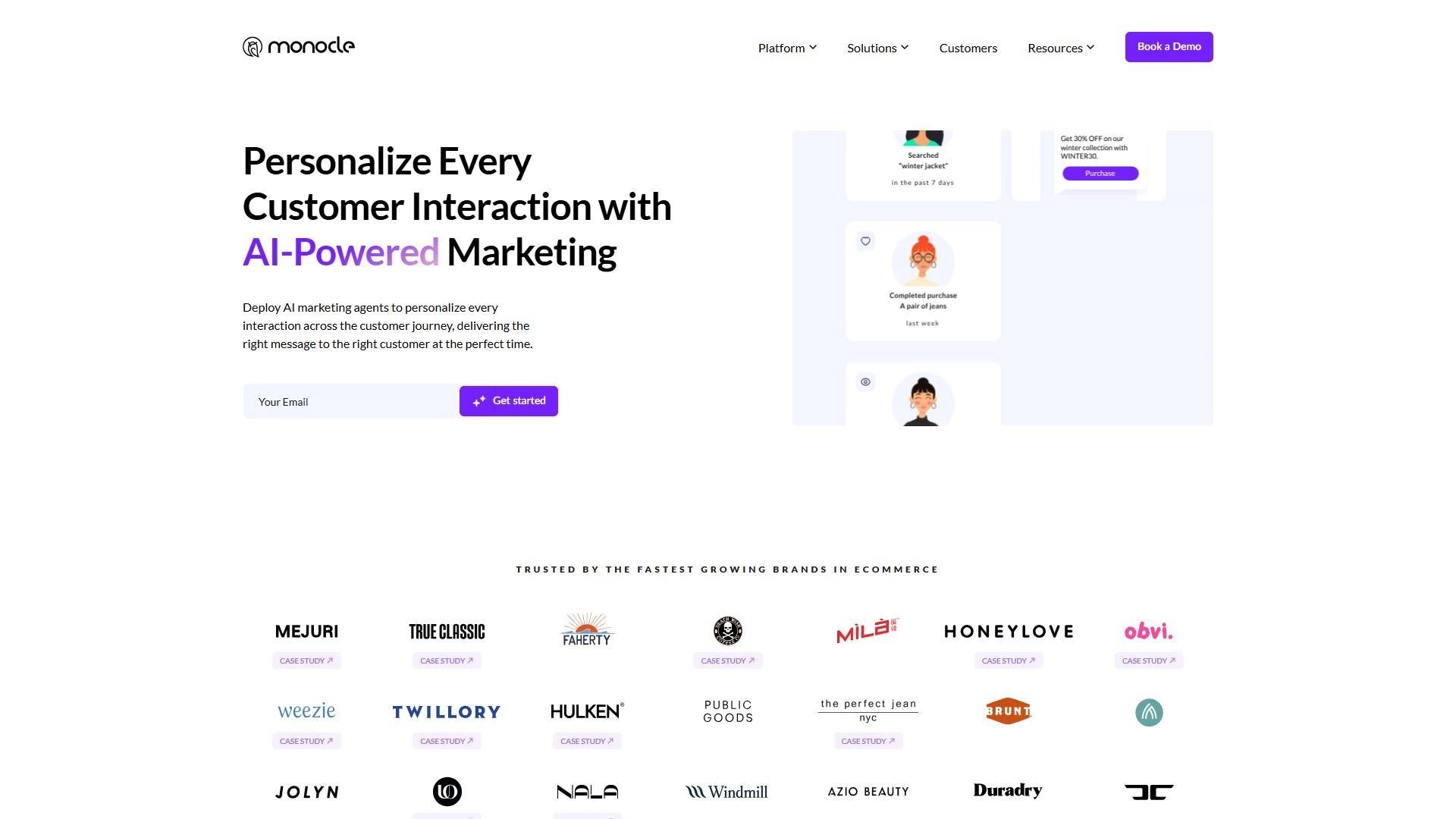 Monocle - AI платформа, автоматизирующая промо акции и персональные стимулы для e commerce. Сервис анализирует поведение покупателей и историю заказов, подбирая предложение под каждого клиента, а не под широкие сегменты. Его цель - увеличить доход и LTV. К тому же не сжигать маржу за счет лишних скидок.