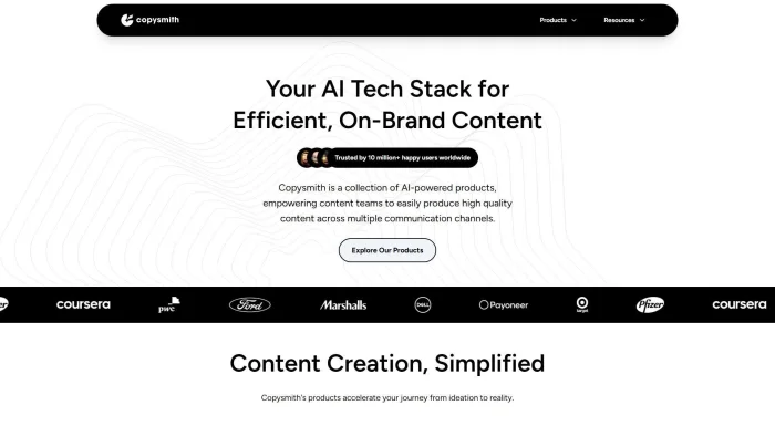 Copysmith - платформа на основе ИИ для создания маркетинговых текстов. Сервис помогает быстро генерировать описания товаров, рекламные объявления, тексты для email и соцсетей. Инструмент ориентирован на команды e commerce и агентства, которым нужно много контента в едином стиле. Подходит как для единичных текстов, так и для массовой генерации по шаблонам.
