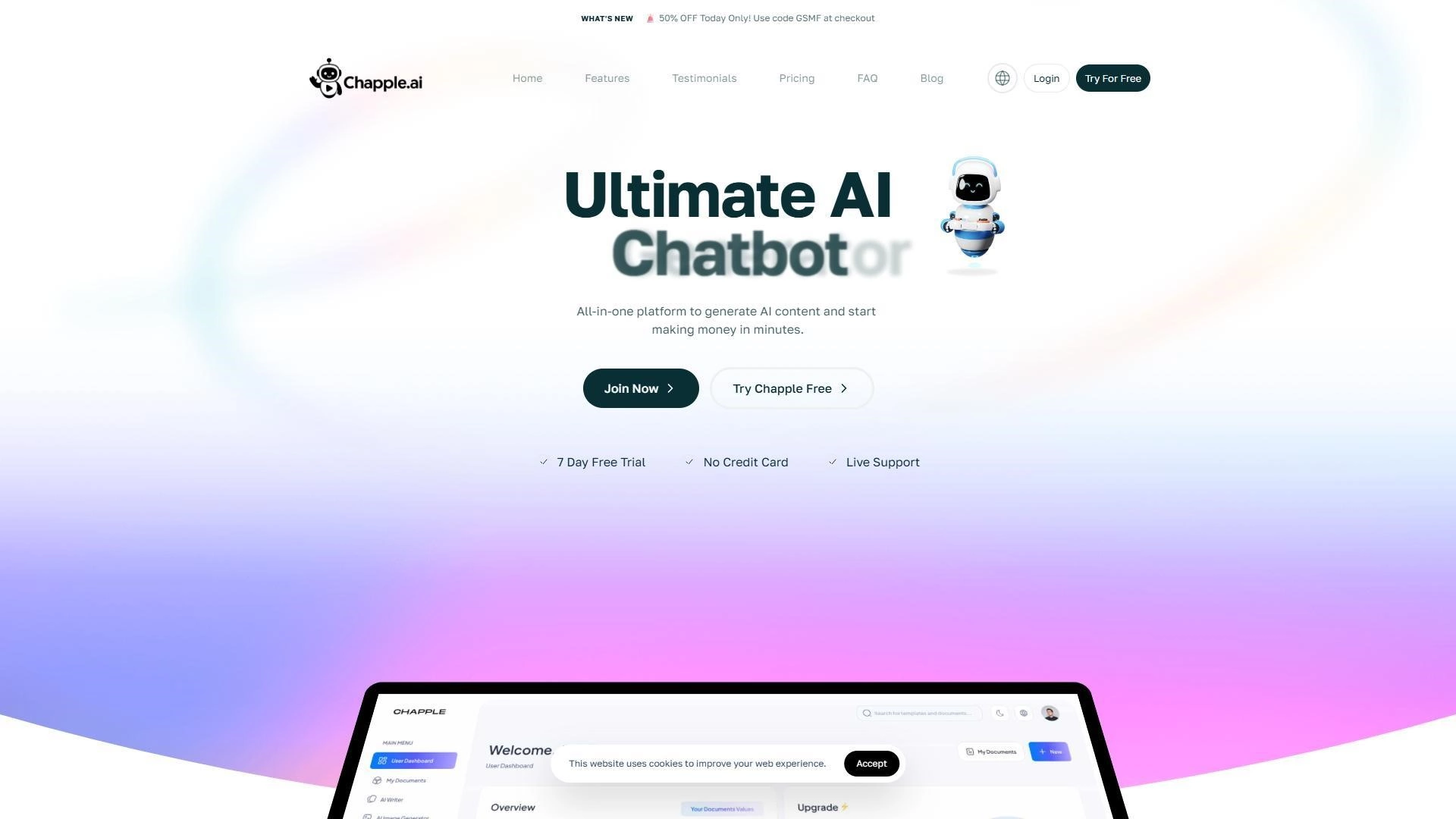 Chapple - универсальная платформа на основе искусственного интеллекта, которая объединяет несколько типов генеративных задач: текст, изображения, код. Платформа ориентирована на маркетологов, создателей контента, разработчиков и малый бизнес.