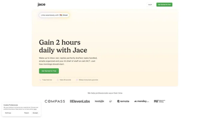 Jace - ИИ ассистент для автоматизации бизнес процессов и рутинных задач. Система годится для компаний. И для специалистов малого и среднего бизнеса. С её помощью можно запускать маркетинговые кампании, управлять наймом, курировать образовательные проекты и удалять рутину, экономя время на повторяющихся действиях. Сервис даёт аналитику, открывает оптимизации и помогает настроить процессы так, чтобы всё работало эффективно.