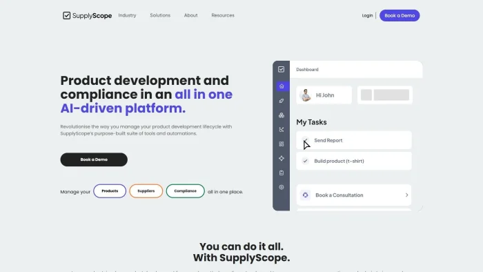 SupplyScope - AI платформа для управления жизненным циклом продукта, которая объединяет данные о товарах, поставщиках и требованиях регуляторов в одном пространстве. Решение помогает автоматизировать проверки соответствия, уменьшить ручной труд и ускорить вывод продукции на рынок.