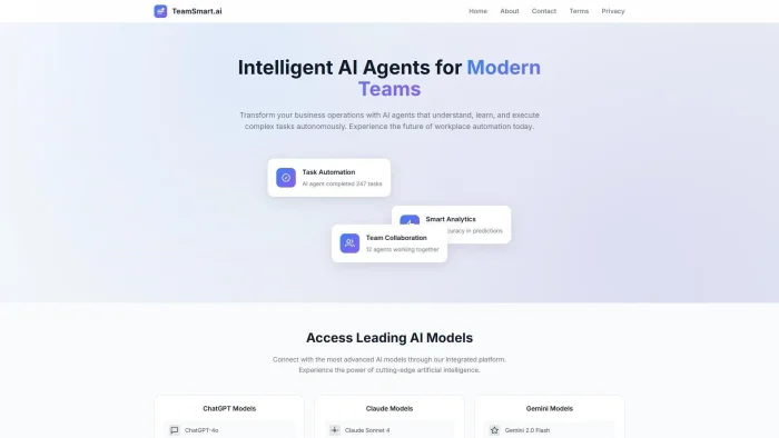 Рабочая ссылка на нейросеть TeamSmart AI на русском языке бесплатно. Если ИИ приложение/сайт не работает или описание не соответствует действительности, сообщите нам.