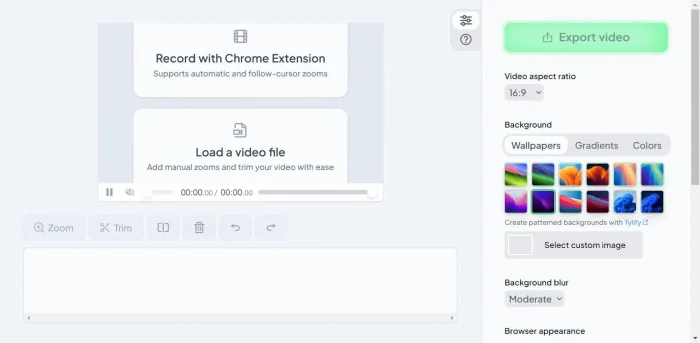 Инструмент записывает окно браузера и автоматически добавляет приближения в момент кликов или важных действий. Переходы между зумами делаются плавно. Чтобы видео выглядело как аккуратный продакшн ролик, а не обычный скринкаст.